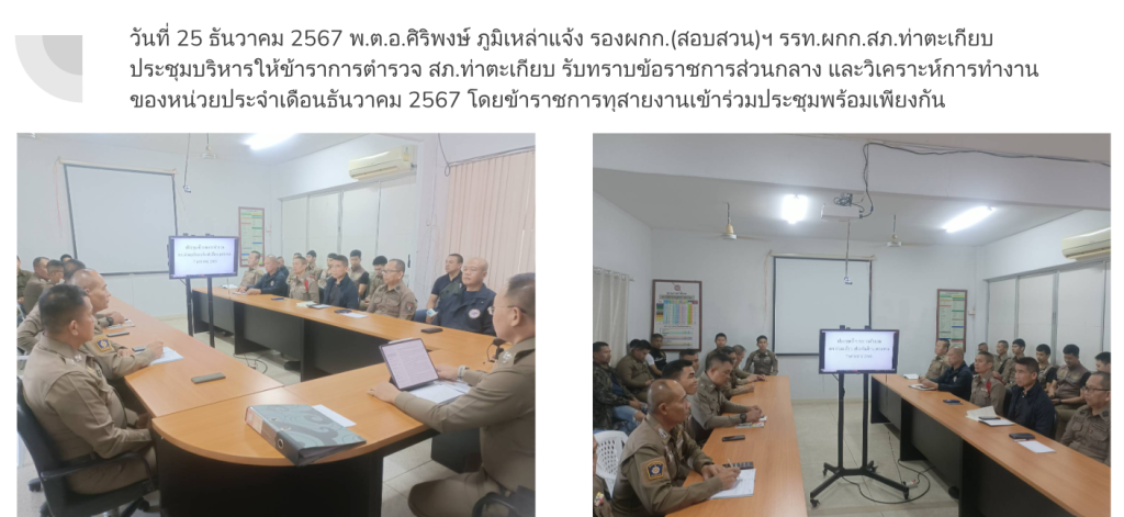 ผลการปฏิบัติงานของแต่ละสายงานของสถานีตำรวจภูธรท่าตะเกียบ ในรอบ 6 เดือนแรกของปีงบประมาณ พ.ศ.2568