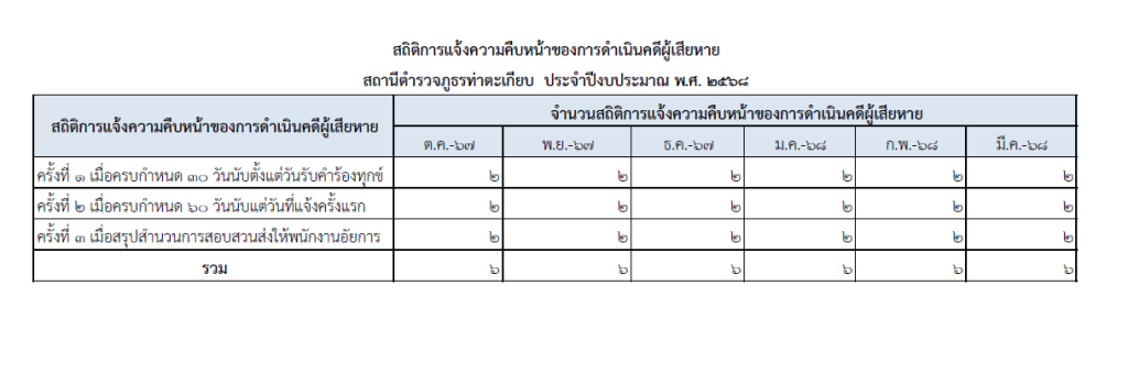 สถิติการแจ้งความคืบหน้าของการดำเนินคดี สถานีตำรวจภูธรท่าตะเกียบ